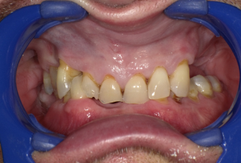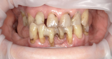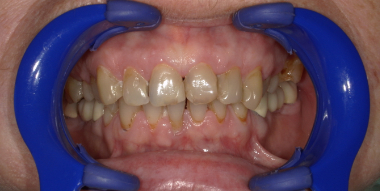 Poniżej przedstawiamy przykład koron porcelanowych oraz protezy szkieletowej z zasuwami w górnym łuku oraz protezy teleskopowej w dolnym łuku wykonanych w naszej klinice: