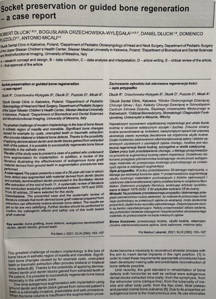 Dr Dłucik ponadto stale prowadzi wielośrodkowe badania naukowe m.in. z oddziałem Chirurgii Szczękowo-Twarzowej Wieku Rozwojowego ŚUM w Katowicach, Zakładem Histologii i Embriologii ŚUM w Katowicach, Zakładem Mikrobiologii i Immunologii ŚUM w Zabrzu, z naukowcami z AGH w Krakowie oraz z Wydziałem Nauk Biomedycznych i Stomatologicznych oraz Obrazowania Morfofunkcjonalnego na Uniwersytecie w Mesynie we Włoszech.