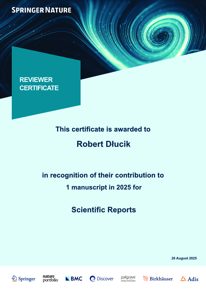 Jest także recenzentem oraz pierwszym autorem publikacji naukowych o autogenicznych przeszczepach kostnych w recenzowanych, krajowych i zagranicznych czasopismach, takich jak np. Polski Merkuriusz Lekarski, Implantologia Stomatologiczna, Expert Review of Medical Devices czy w prestiżowym Journal of Functional Biomaterials. Od 2017 roku Dr Robert prowadzi nowatorskie badania na temat uzupełnień ubytków kostnych przy użyciu zmielonych zębów własnych pacjenta. W 2024 roku dr Robert obronił z wyróżnieniem przyznanym przez rektora ŚUM w Katowicach, rozprawę doktorską pt. „Regeneracja ubytków kostnych autogenną zębiną” uzyskując tytuł doktora nauk medycznych. Jest to pierwsza dysertacja w Polsce o tej tematyce. W 2026 roku rozpoczął prestiżowe studia podyplomowe z chirurgii stomatologicznej, implantologii i periodontologii na Uniwersytecie PgO UCAM w Hiszpanii.